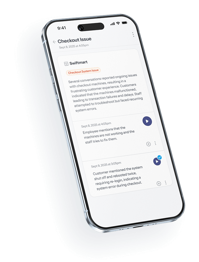 Alerts identify operational, compliance, and customer risks the moment they happen — not after escalation.